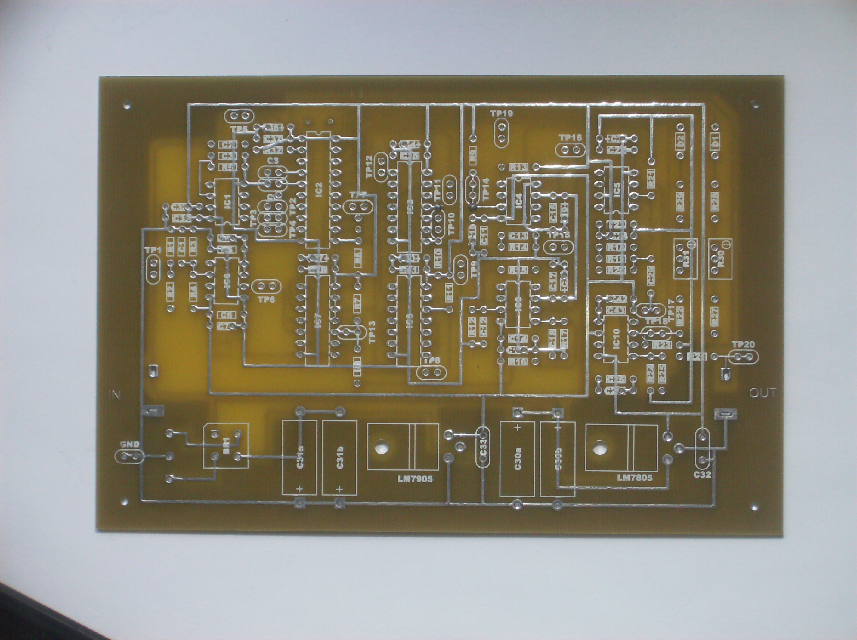The schematic diagrams, printed circuit board pattern, and N.C. drill patterns were completed using Diptrace software by Novarm. After a series of sub-cicuit testing, two prototype circuit boards were made in my home using photo-positive pcb manufacturing techniques, including uv exposure, developing, etching, and drilling. The parts were then soldered to the board. Pictures of this assembly steps are in the left section of this page. A program for the Atmel microcontroller was written in machine assembler language using Atmel Studio 4 IDE. The microcontroller was programmed using an Atmel STK500 programmer. Since the design proved to be a success, several boards were made by Advanced Circuits in Aurora, Colorado. An instruction manual was written to assemble this pcb as a kit soon after the patent was filed. The manual has a copyright registration number TXu001605040 issued 11-07-2007. A link to the document is available in the right page section. Links to the Series One schematic diagrams and the printed circuit board patterns are provided to the right.