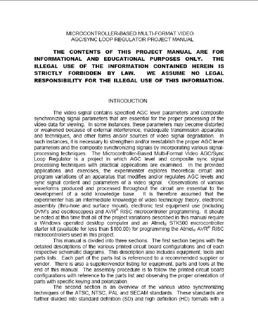 I have a proven ability to custom design electronic circuits. The most complex and successful example is that of United States Patent Number 8,144,250 B2 entitled "Microcontroller-Based Multi-Format Video AGC/Sync Loop Regulator." A link for viewing this patent is provided in the right page section. This patent is a pro se document that was written and legally prosecuted by me in its entirety. The circuitry was designed and tested in my personal electronics lab in my home. The circuit is designed to stabilize the AGC and horizontal sync portions of the vertical blanking interval (VBI) and the horizontal blanking interval (HBI). It can also be used to modify the data that is contained in certain portions of the VBI. This modification is accomplished by the program written into the on-board microcontroller.
