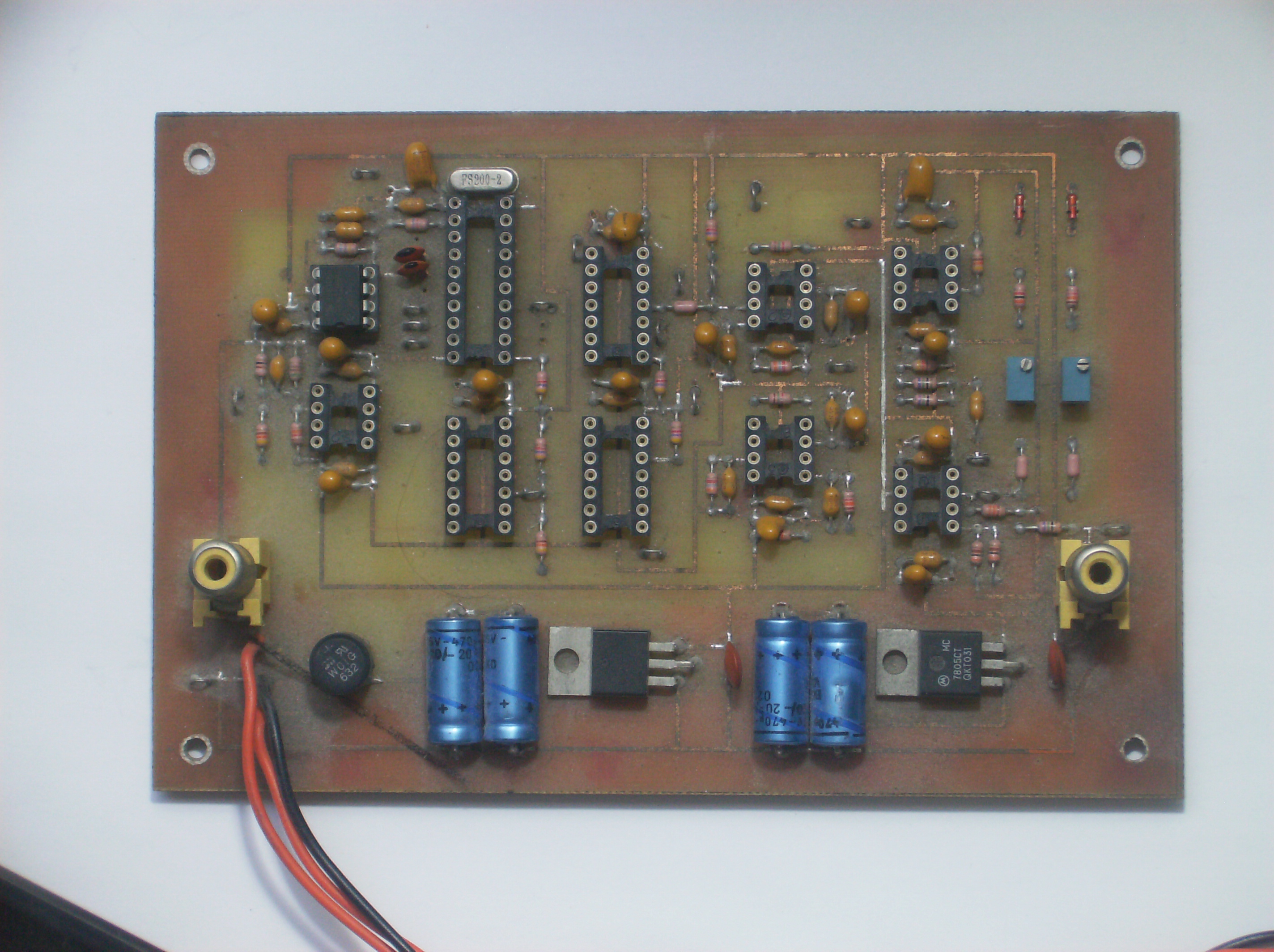 The schematic diagrams, printed circuit board pattern, and N.C. drill patterns were completed using Diptrace software by Novarm. After a series of sub-cicuit testing, two prototype circuit boards were made in my home using photo-positive pcb manufacturing techniques, including uv exposure, developing, etching, and drilling. The parts were then soldered to the board. Pictures of this assembly steps are in the left section of this page. A program for the Atmel microcontroller was written in machine assembler language using Atmel Studio 4 IDE. The microcontroller was programmed using an Atmel STK500 programmer. Since the design proved to be a success, several boards were made by Advanced Circuits in Aurora, Colorado. An instruction manual was written to assemble this pcb as a kit soon after the patent was filed. The manual has a copyright registration number TXu001605040 issued 11-07-2007. A link to the document is available in the right page section. Links to the Series One schematic diagrams and the printed circuit board patterns are provided to the right.